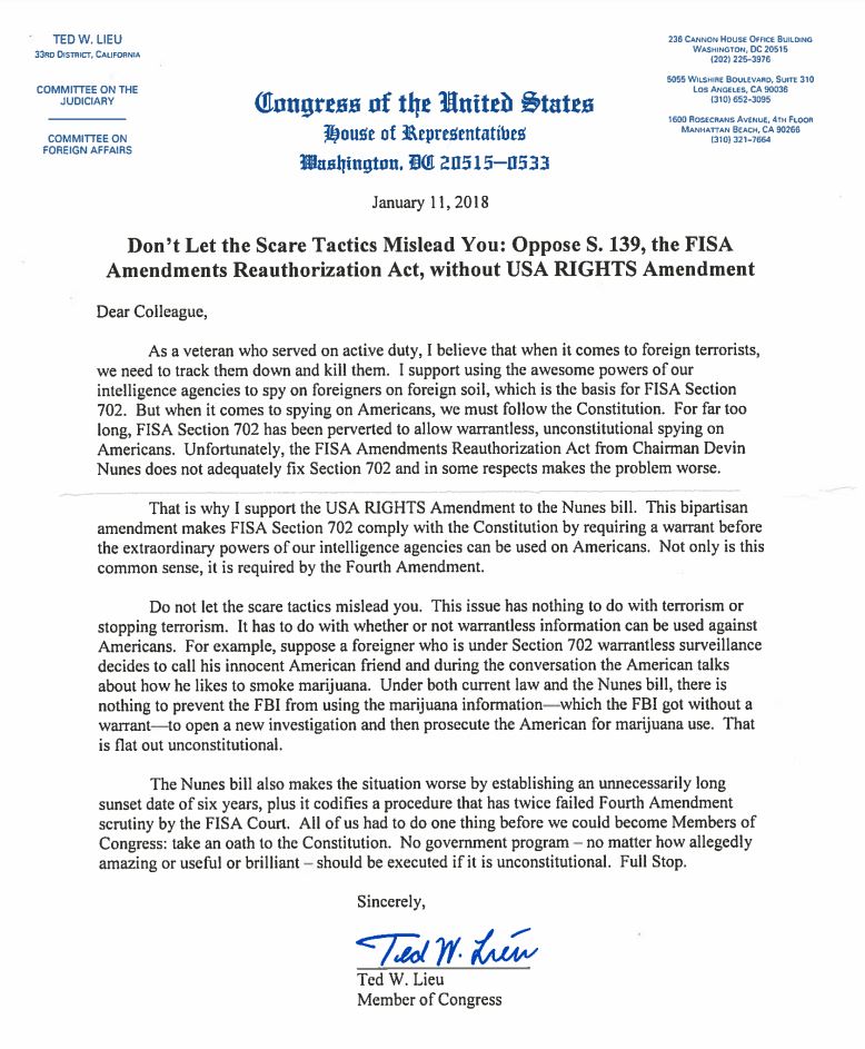 Thanks for standing up for us, Representative Lieu. #resist