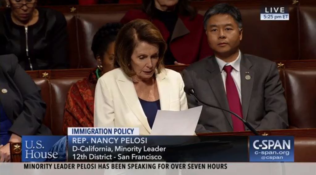 "The Office of the House Historian confirmed Wednesday that Pelosi was in the midst of giving the longest continuous speech in House history since 1909 when Rep. Champ Clark, D-Mo., spoke for five hours and 15 minutes."