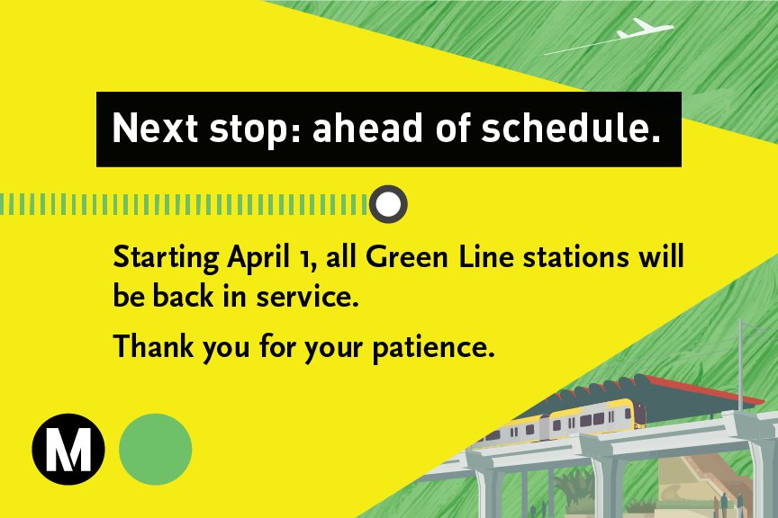 Green Line trains will resume service to all stations starting tomorrow, April 1. http://mtro.la/8YUJ30jcVSJ  pic.twitter.com/SHSwi9kTRT