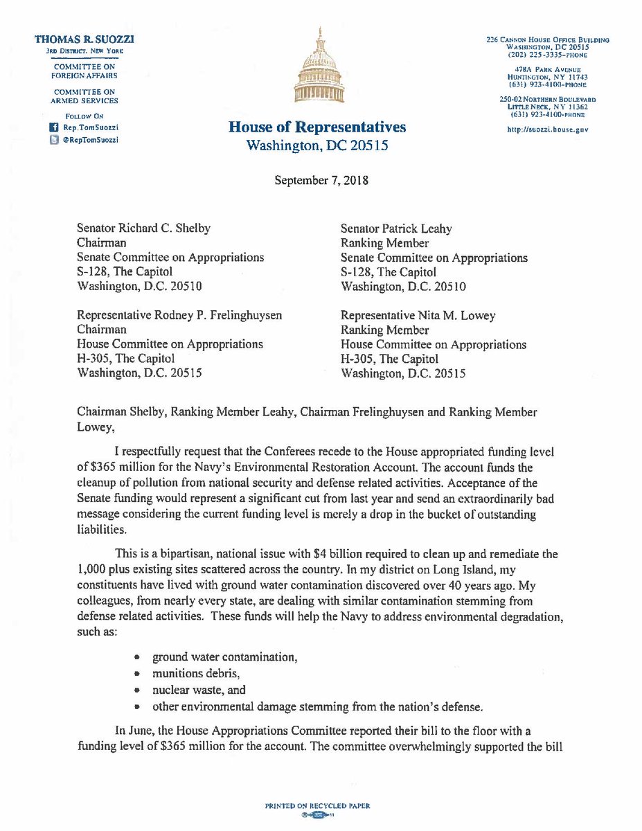 Today, I called on my Senate colleagues to continue the work the House has done to provide increasingly robust funding for the cleanup & remediation of the NavyGrummanPlume & similar sites throughout the country. We need to cut thru the bureaucracy & expedite this cleanup.pic.twitter.com/qQRwOuWxAx