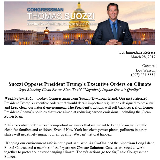 My statement on the President's exec orders to derail the #CleanPowerPlan. Simply unacceptable. We need clean air & a clean environment.pic.twitter.com/soCzDj1Q4B