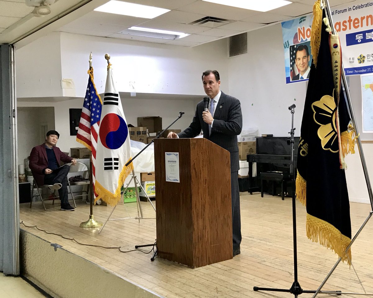 Was the keynote speaker at the Northeastern Asia Peace Forum in Queens today. It was great to address the Korean-American community there! #NY03pic.twitter.com/qlIrLK11ap