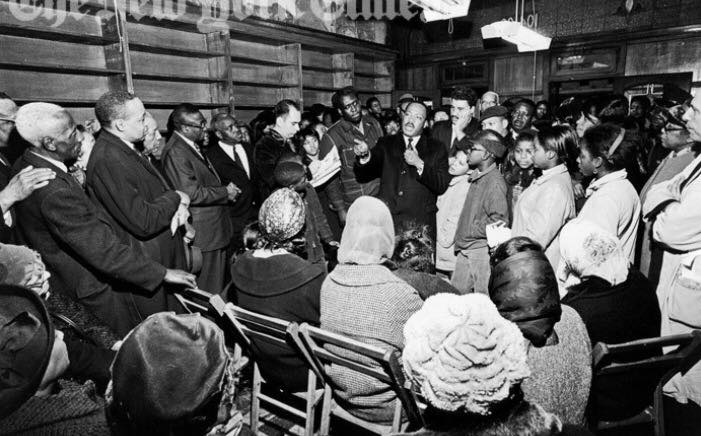 A photo of #MartinLutherKing that hangs in my DC office. He's speaking to a group of people in what looks like a church basement. Today as we celebrate his legacy, his vision, & his unwavering pursuit of equal justice for all, let’s commit to do the work to win the battle.pic.twitter.com/zAu1i4YOYK
