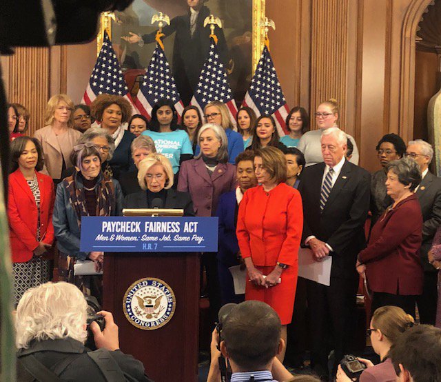 Today I stood tall with many Democratic women to support #PaycheckFairness and I’m proud that every single member of our caucus has signed on to the Paycheck Fairness Act for #EqualPay.pic.twitter.com/EtIiddhjEC