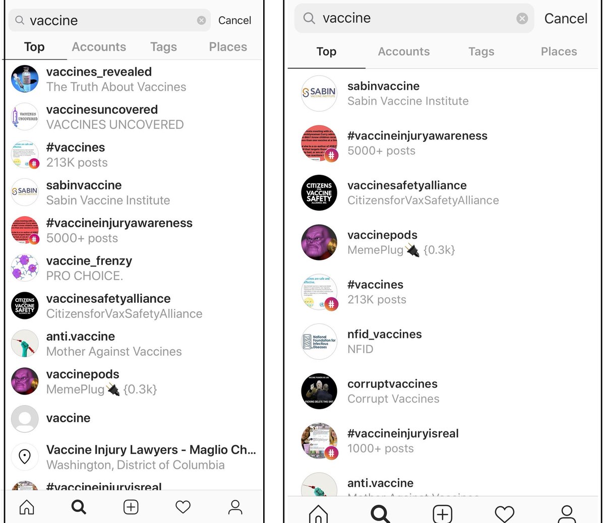 Do me a favor: search “vaccine” on Instagram and reply with a screenshot of what comes up. That’s what I did yesterday, and I got an overwhelming amount of anti-vax accounts peddling conspiracies and misinformation that literally puts lives in danger.pic.twitter.com/dAXljiGFnq