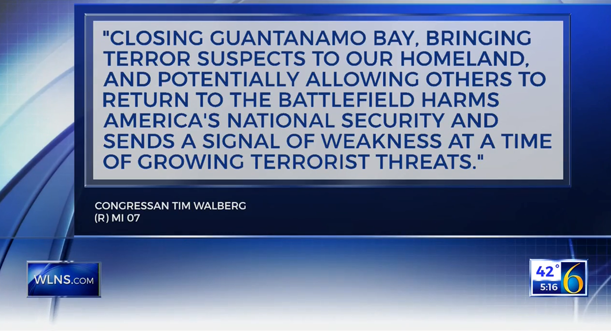 Via @WLNS, my reaction to President Obama's dangerous plan to unilaterally close Guantanamo Bay:pic.twitter.com/H8NdYguIDy