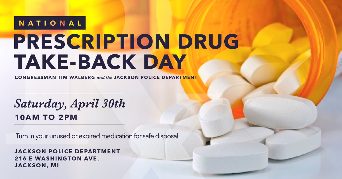 This Saturday is National Prescription Drug Take Back Day with locations across #MI07 --> http://1.usa.gov/1SQ6Feo pic.twitter.com/muEkl6avfj