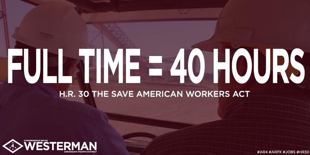 Please RT! Full time=40 hours. The Save American Workers Act restores full-time #jobs for #AR4 residents. #hr30 #arpxpic.twitter.com/a3F7fIC8Jv