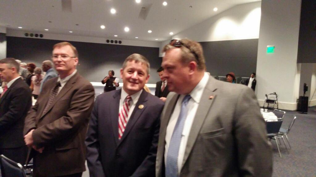 Bruce & Rep. @JTVines at the 17th Annual HS MLK Prayer Breakfast at the HS Convention Center. #ar4 #arpxpic.twitter.com/OPz6p450Ny