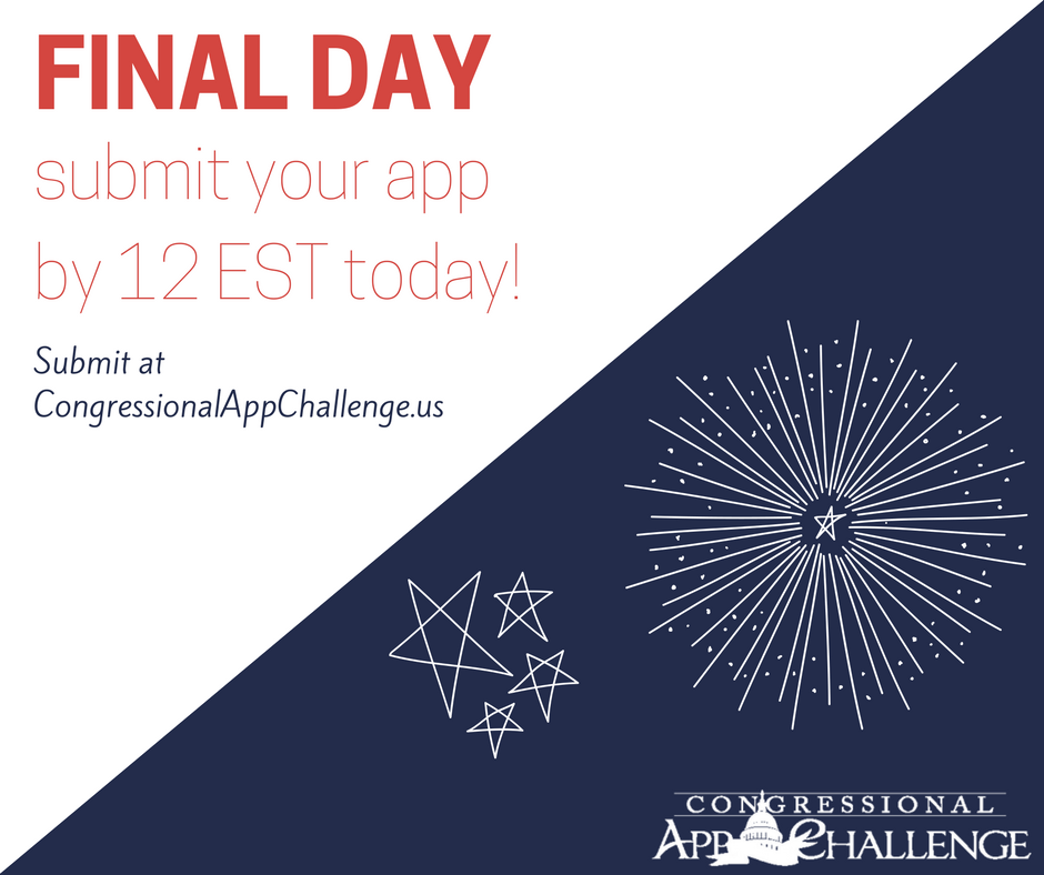 It is the final day! Submit your app to the @CongressionalAC by 12 p.m. Eastern today!pic.twitter.com/ajbEyvHS1Y