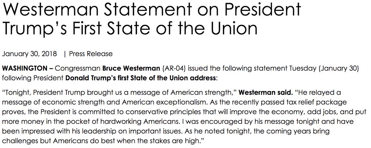 RELEASE: Westerman Statement on President Trump’s First State of the Union https://westerman.house.gov/media-center/press-releases/westerman-statement-president-trump-s-first-state-union … #SOTU #ar4 #arpx #arnews #nwanewspic.twitter.com/s1FGko3lmh
