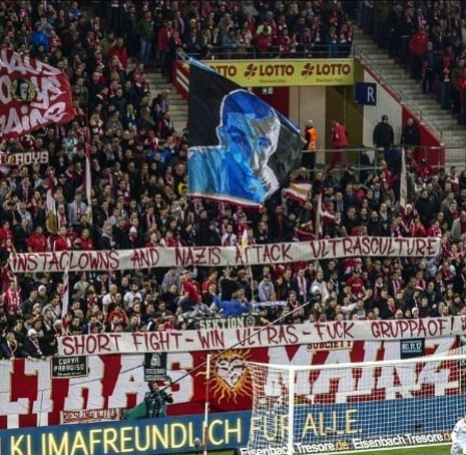 @1FSVMainz05 -@werderbremen : Spruchband der Ultras Mainz gegen rechte#Instagram und#Facebookseiten die Fußballgewalt dokumentieren und rechte Propaganda verbreiten.#ultras#ultraschön#mainz#nonazispic.twitter.com/T5o0mLTVVF