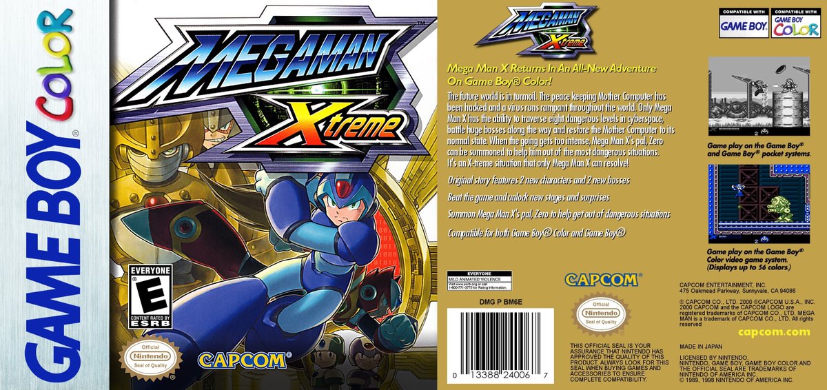 MEGA MAN XTREME: Here's the cover for the action platform game by Capcom for the Game Boy Color. Released in 2000 this is a cool spin-off to the Mega Man X series, did you ever summon Zero to help you defeat enemies?