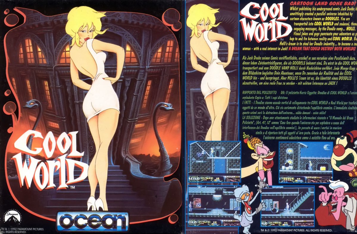 COOL WORLD: Here's the cover for the 1992 action platform game by Twilight based on the live action/animated film. Released by Ocean for several computer and console formats, did you ever stop the dangerous Holli Would?