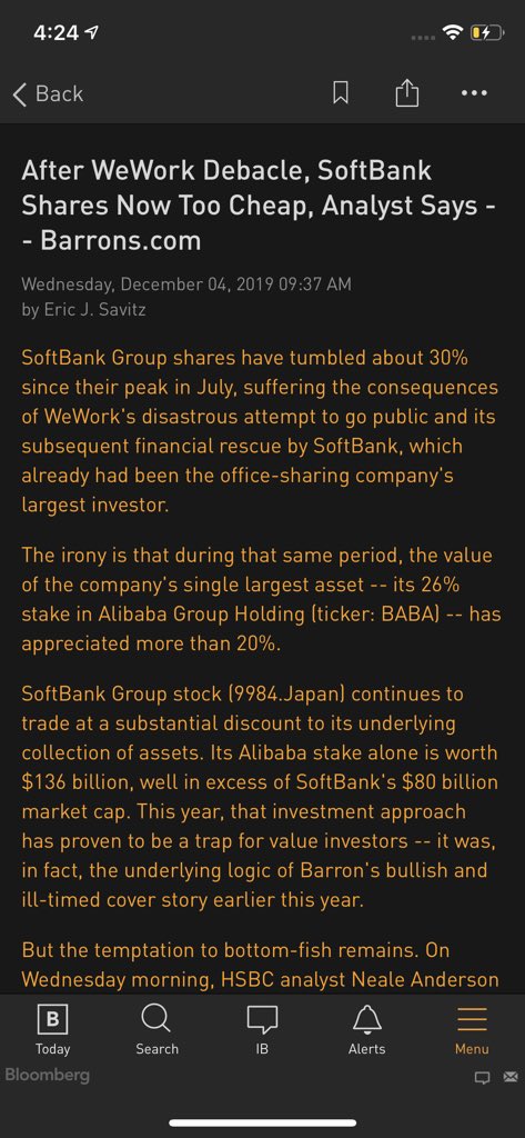 Credit where credit is due - Barron’s writing about an analyst upgrade, he now says SoftBank is too cheap.