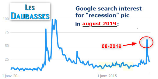 On cherche beaucoup moins le terme "récession" depuis les 4 derniers mois et les marchés ont été haussiers :