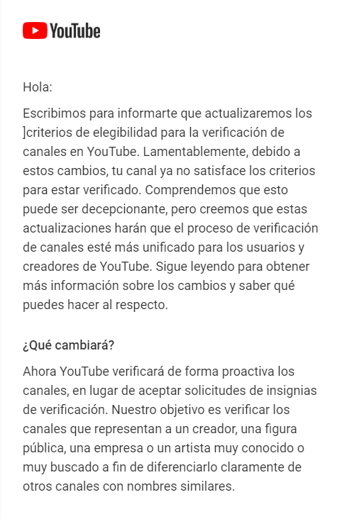 Esto es muy triste, no solo para mi, sino para otros creadores de contenido, Tener un canal verificado es como una ilusión a parte de una placa de los 100K.