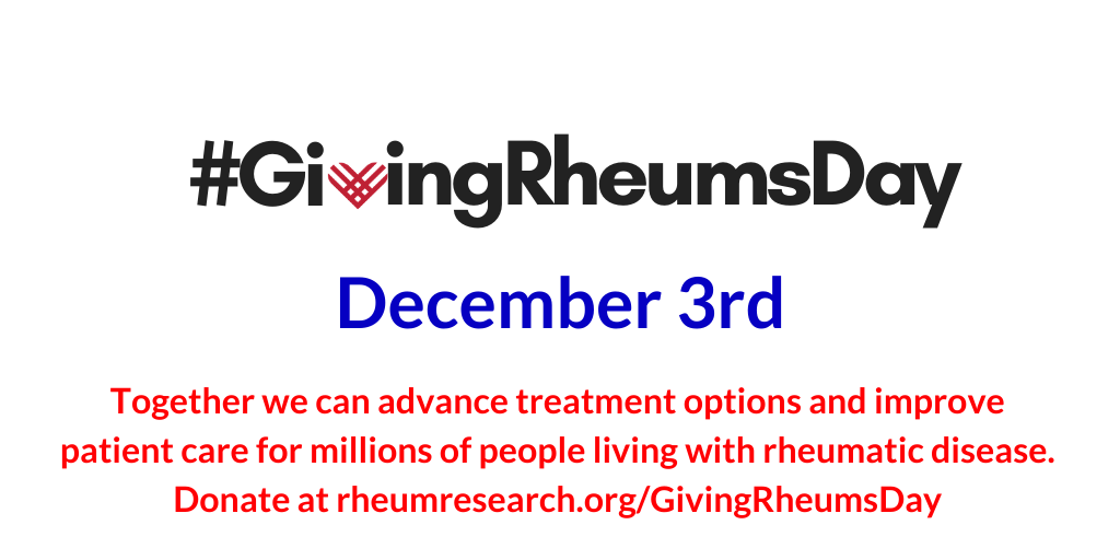 #GivingRheumDay! Help support groundbreaking research and training programs for#rheumatology professionals. Together we can advance treatment options & improve patient care for millions of people#rheumaticdisease. Visit http://www.rheumresearch.org/GivingRheumDay to give!pic.twitter.com/bRx8Nsg1rl