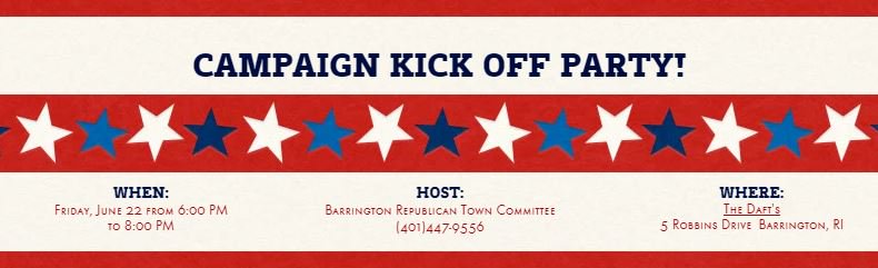 FRIDAY: Please join the Barrington Republican Town Committee for a campaign kick off social. We have candidates running for office and they look forward to meeting you all! We hope you will stop by for food, drinks and good company! http://ow.ly/FkGu30kxQZL Friday, June 22ndpic.twitter.com/YRJzHBx1Ua