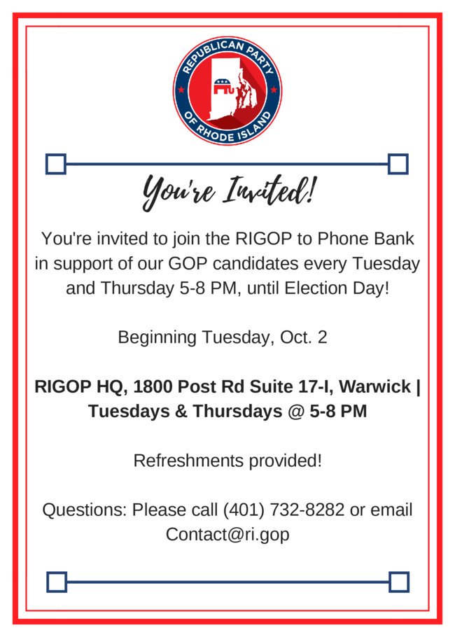 TONIGHT: Phone Bank with the RIGOP!! Refreshments provided ! #RIelections #LeadRight2018 @GOP @YoungGOP401 @RIFRW @RIRLC @RhodeIslandCRspic.twitter.com/DaRWFoQ56U