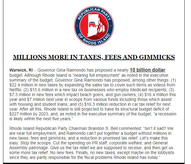 RT @PatrickAnderso_: Here's the @RhodeIslandGOP reaction to @GovRaimondo budget.