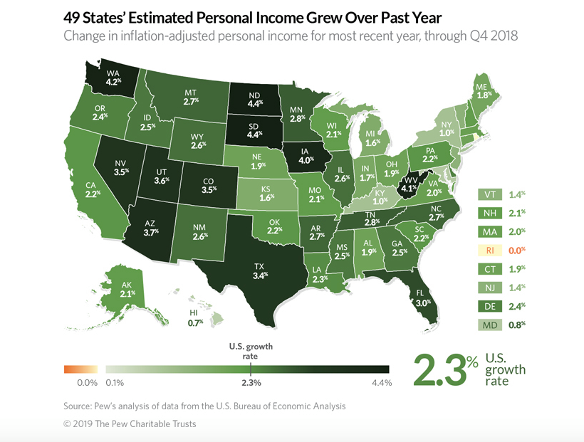 RT @RIHouseGOP: Personal income grew in every state in each quarter of 2018, except Rhode Island, which recorded slight declines in the second half of the year. 📰 States Recorded Widespread Economic Gains in 2018 ➡️ http://bit.ly/2Vuf3HN pic.twitter.com/xNZZPdEkim