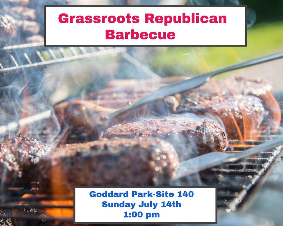 Grassroots Event! Please join us in Goddard Park on July 14th 1PM site 140 for an afternoon of barbecue, refreshments and get to know your fellow conservatives. A few speakers but more importantly handshakes and contacts.