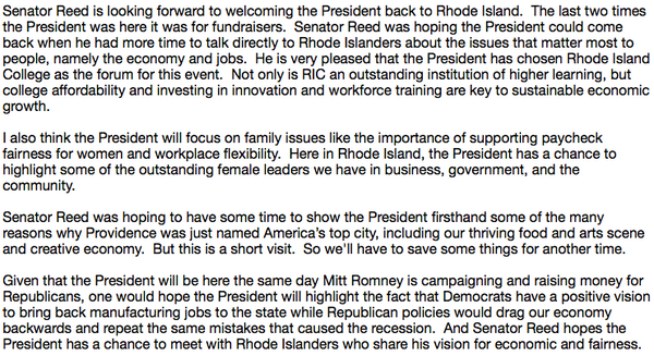 .@SenJackReed spox on Obama visit - expects focus on women, "paycheck fairness," anti-GOP; wish he'd stay for dinnerpic.twitter.com/8Kj9Dm7U2t