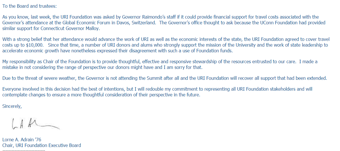 Lorne Adrain, chair URI Foundation Executive Board