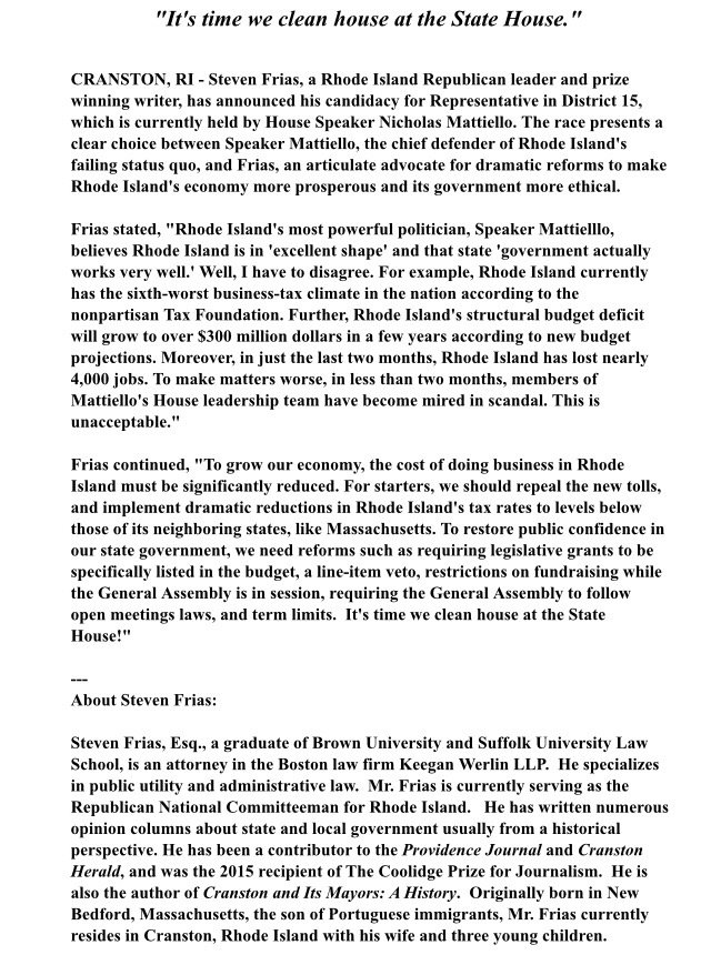 RT @IanDon: Steven Frias announces GOP run against @RISpeaker often called the states most powerful elected officialpic.twitter.com/5gwI1TDBwF