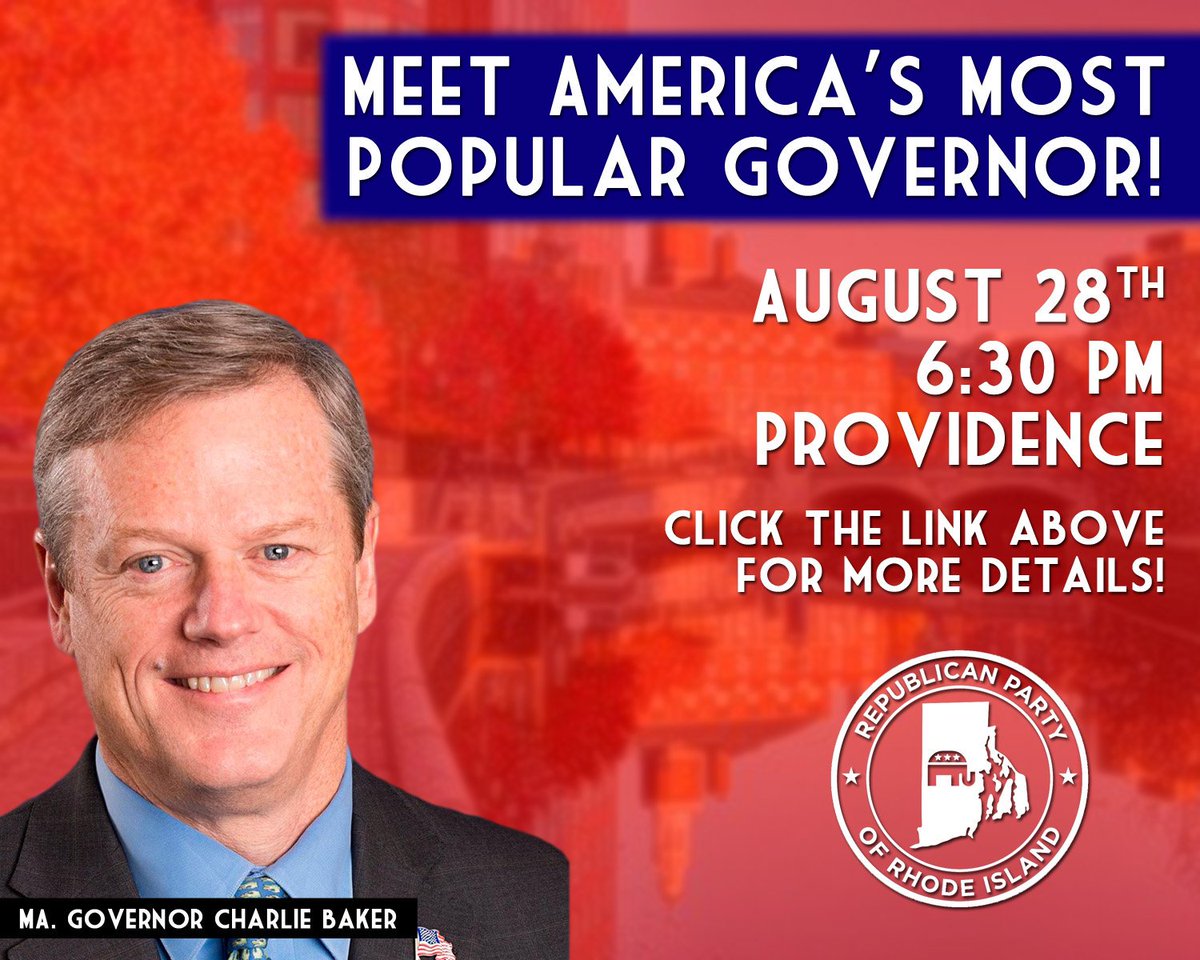 Join the RI GOP and Governor Charlie Baker for a reception in Providence next Monday! Click here to RSVP! --> https://secure.anedot.com/rigop/rigop-baker …pic.twitter.com/v0zqV4xN3m