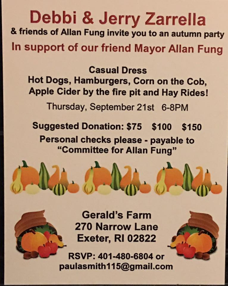 EVENT: Autumn Party in support of @MayorFung. Hot dogs, Hamburgers, Corn on the Cob, Hayrides & Apple Cider by the fire pit ! September 21stpic.twitter.com/pZ6mDszaJ5