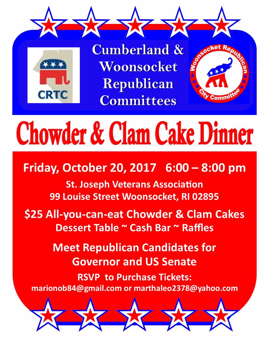 EVENT: Cumberland and Woonsocket Committees Chowder & Clam Cake Dinner - Meet the Candidates - Friday, October 20th - @rihousegop @RISenatepic.twitter.com/mQMwZEfOkf
