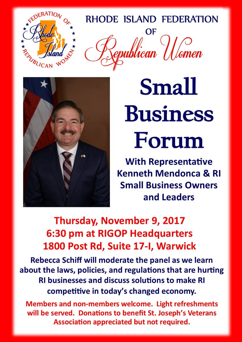 EVENT: @RIFRW Small Business Forum with Rep @ElectKenRI Ken Mendonca & RI Small Business Owners & Leaders http://ow.ly/Srd530gbBib @SBALindapic.twitter.com/lwQ4CXZpsU