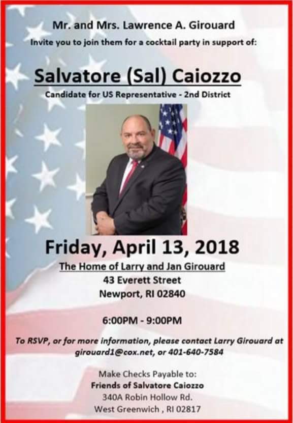EVENT: Cocktail Party in Support of Sal Caiozzo, U.S. Congress. Rhode Island. 2nd District @salforcongress