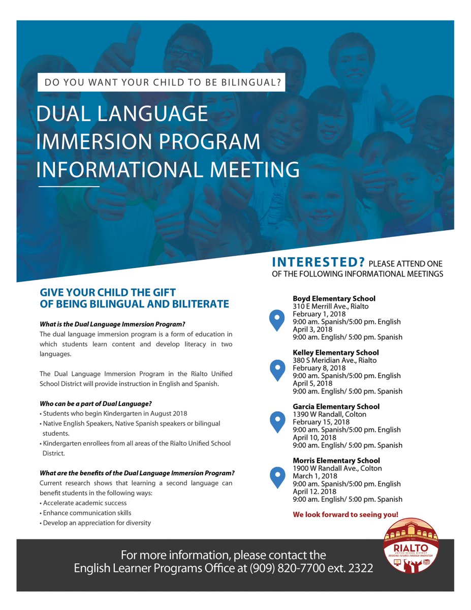 Do you want your child to be bilingual? Learn more about RUSD Dual Immersion Program.pic.twitter.com/X9w5LynOJF