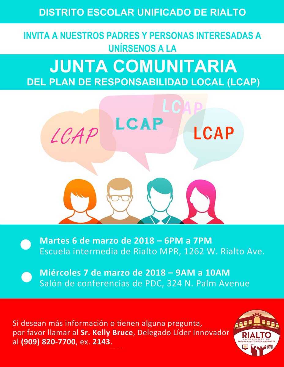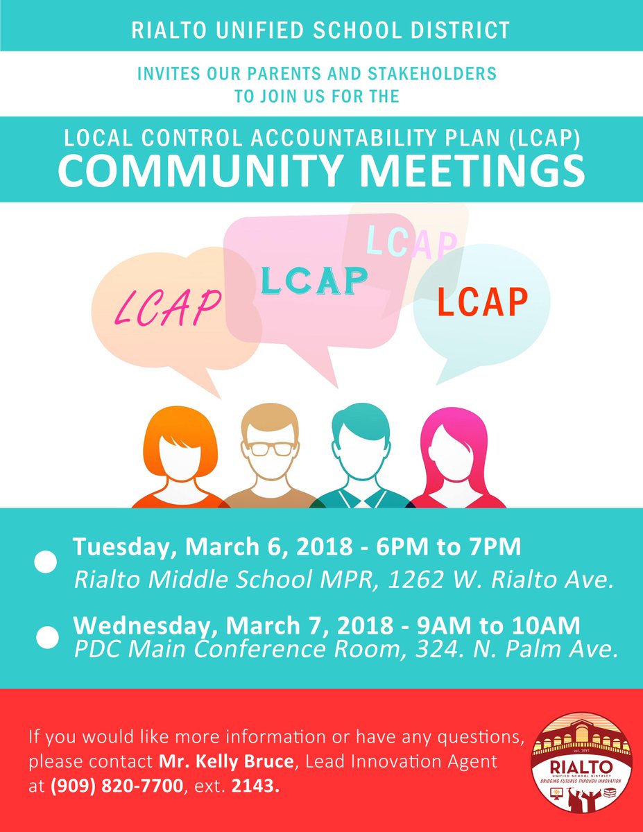The RUSD community LCAP meetings will be held next Tuesday and Wednesday. Please see additional information in the flyers below.pic.twitter.com/UszNvBcwKT