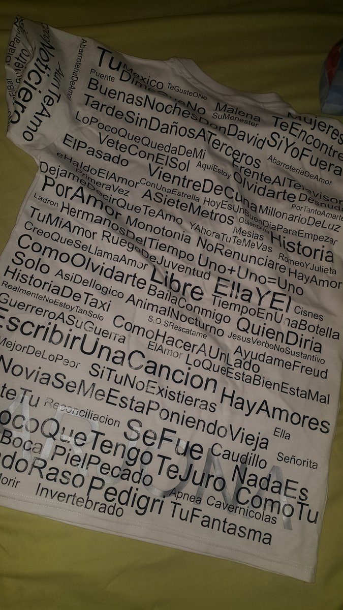 Está remera que tiene tu historia plasmado en todos los nombres de tu canciones solo le falta tu firma