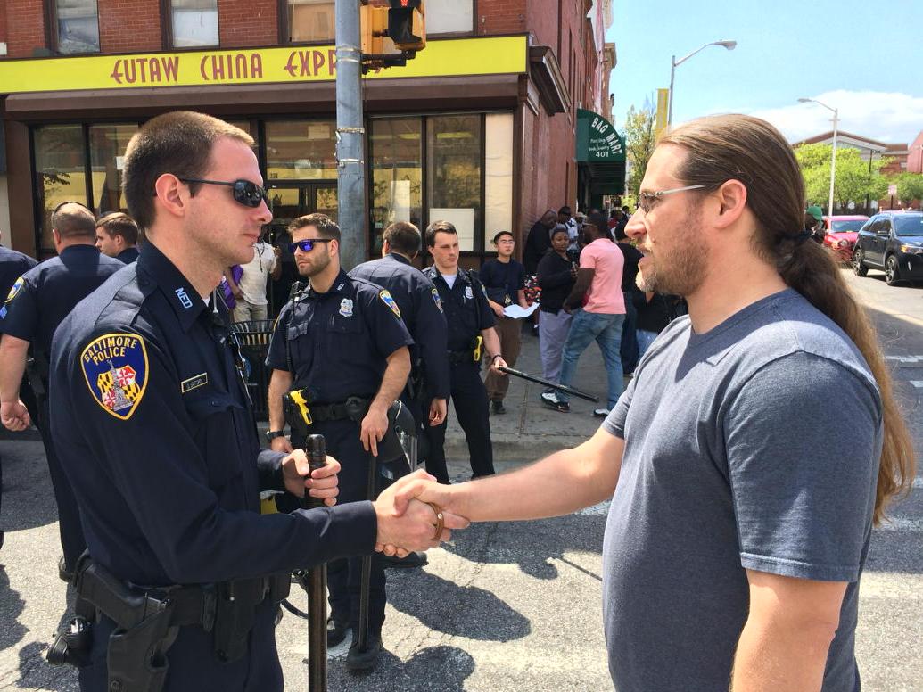 Officer and protestor. Making peace. Baltimore, Saturdaypic.twitter.com/BPgq7GpDlV