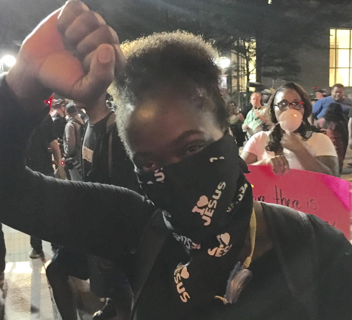 I heart Jesus bandanna on Charlotte protester tonight. Uptown.pic.twitter.com/OHcgp4FcJn