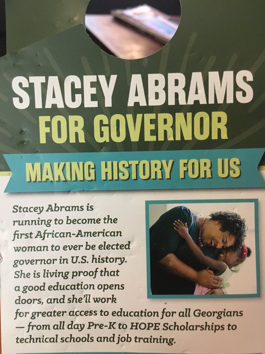 Abrams hitting the “making history” note with pre-elex door hangers in Atlanta...pic.twitter.com/ejICjrkPvv