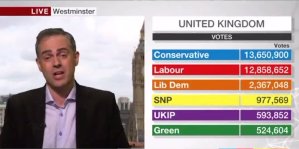 Update at 649 declared: UKIP 593,852 (no MP) Green 524,604 Lib Dem 197,337 Lab 49,267 Cons 42,927 PC 41,117 SF34,131 DUP 29,232 SNP 27,931