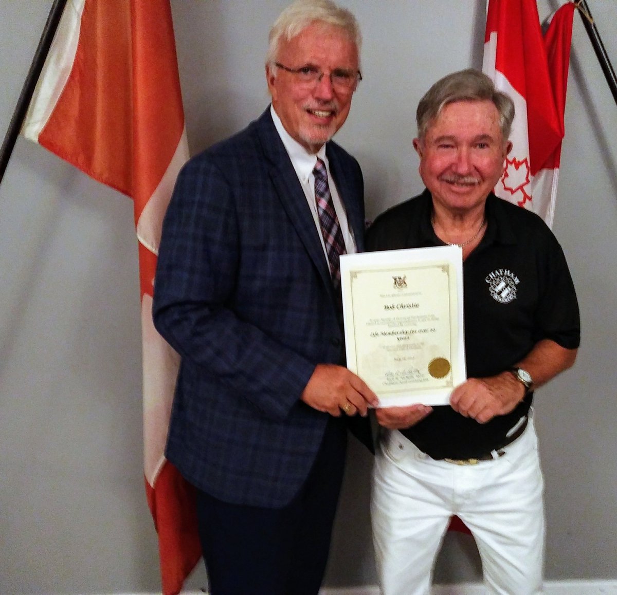Pleased to address and present awards to the Chatham Kinsmen Club celebrating their 90th year serving Chatham. Pictured with Kin President Jared Nissen, and Kin life time members Bob Christie and Ted Prosser.pic.twitter.com/cNRAv1Bcsg