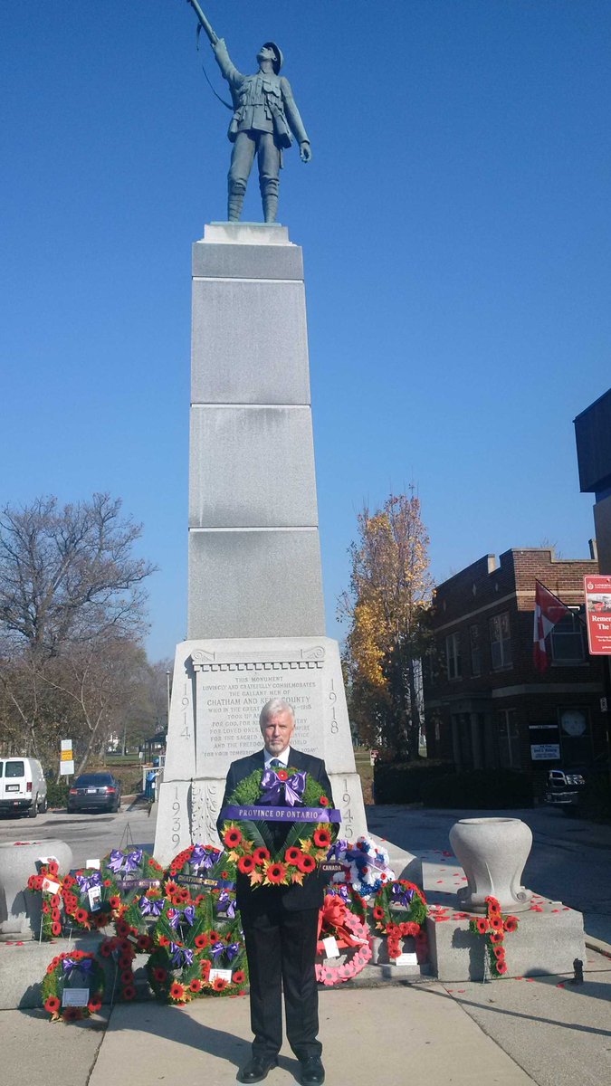 Remembrance Day Chatham in front of Cenotaph proudly holding Ontario wreath. Huge crowd. Lest we forget!pic.twitter.com/6J5IS9nhTc