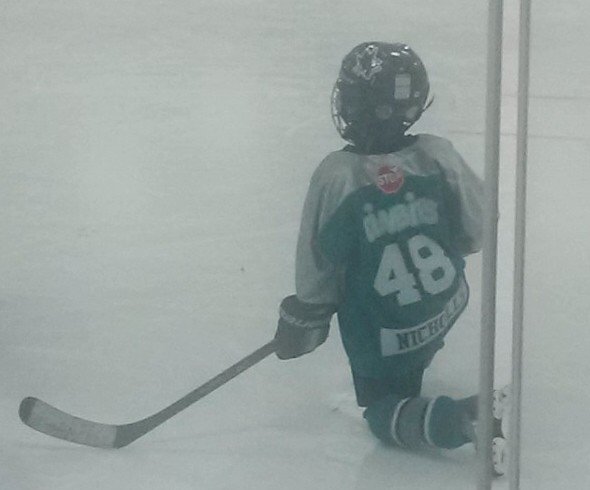 Future NHLer? Grandson Calvin waiting for play to resume. Told him "the harder you work, the luckier you'll be".pic.twitter.com/7T0ej5h4zK