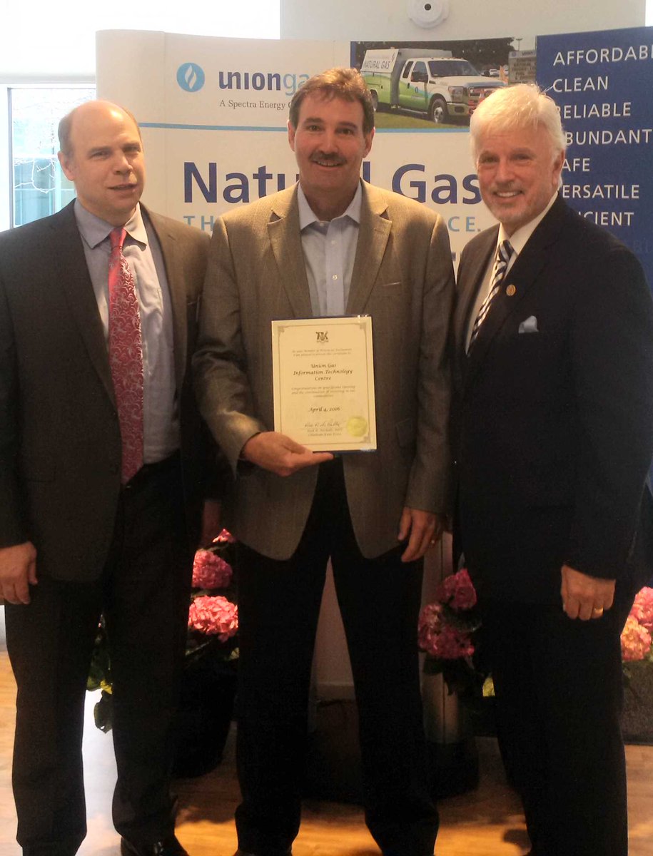 Dir. IS Mike Packer & Pres. of Union Gas Steve Baker on grand opening of their new IT Centre in Chatham @uniongaspic.twitter.com/P8nySdWyfp