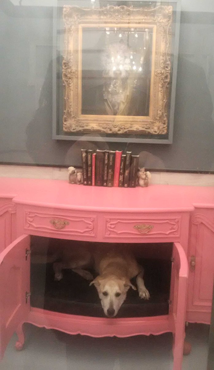 TLC @dogtalesrescue. This rescue has his bed inside the cabinet. How "suite" it is. Designed by Danielle Eden.pic.twitter.com/VVHTOij4AW
