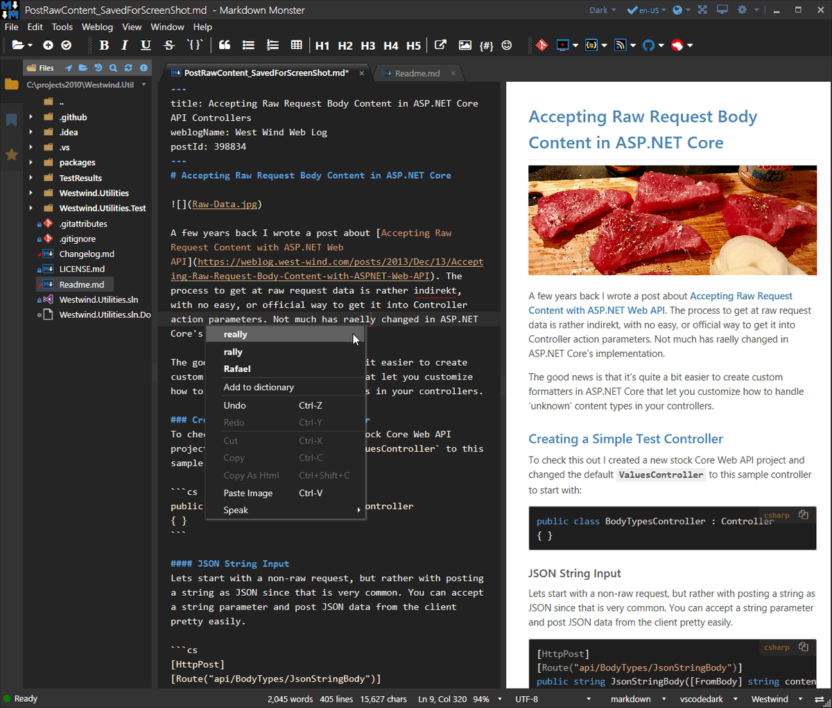 Markdown Monster 1.21 is out. This is a rollup release w/ lots of fixes & perf improvements. * Improved Preview Sync Perf * Improved Large Document Perf * Clickable Editor Links * Extensible Custom KeyBindings * New PreviewWebRoot Pathing https://github.com/RickStrahl/MarkdownMonster/releases/tag/1.21 …
