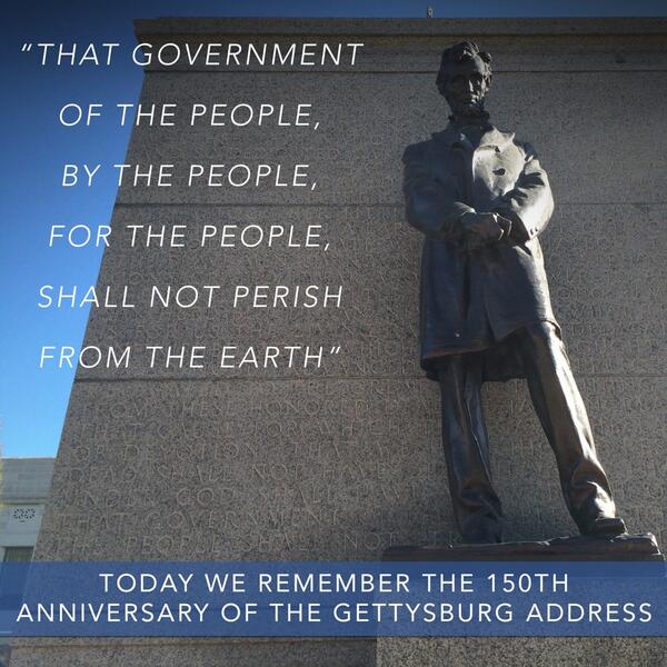 Remembering the powerful words spoken by Abraham Lincoln at Gettysburg 150 years ago today. #Gettysburg150pic.twitter.com/D9uECfKvWr