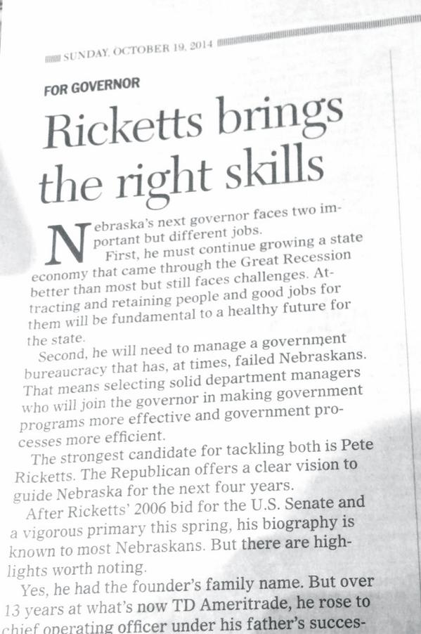Pete Ricketts‏Verified account @RickettsForGov 18 Oct 2014